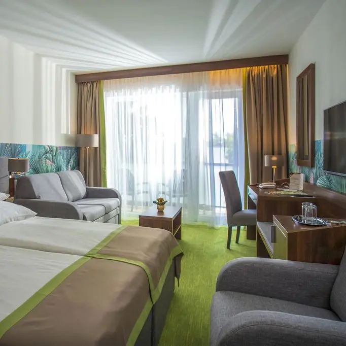 Wellness: centru de wellness în incinta complexului Aquapolis, conectat de hotel printr-o pasarelă: piscine cu apă termală, piscine cu tobogane, piscină pentru copii, piscine exterioare, masaje, saune, centru de tratament.