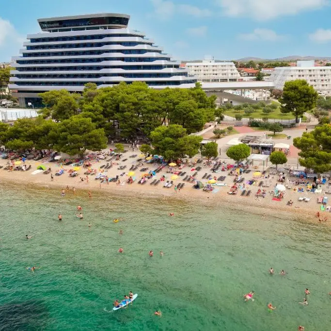 Hotelul Olympia din Vodice, e aproape de centru, la circa 500 m. Cea mai apropiată plajă, o plajă cu pietriș se află la doar câțiva metri distanță. Resortul a fost renovat parțial în 2024.