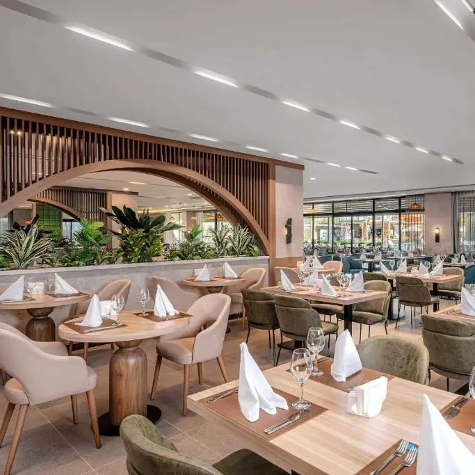 Ultra All inclusive: mic dejun, pranz si cina tip bufet in restaurantul principal, diverse gustari in timpul zilei servite a la carte la barul de la piscina si de pe plaja. Bauturile racoritoare locale si bauturile alcoolice si cele selectate din import sunt servite 24 de ore pe zi in baruri selectate, restaurantele a la carte sunt contra cost.Un restaurant principal, restaurante a la carte: italiene si turcesti, bar si cafenea in hol, bar la piscina, bar pe plaja, disco bar.