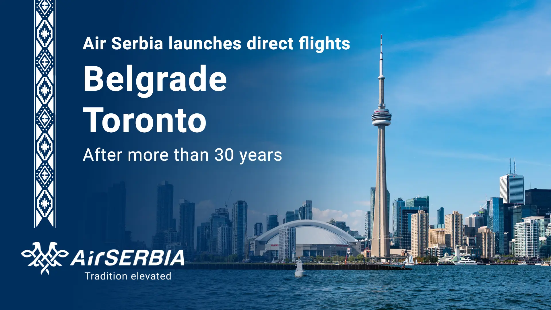 După mai bine de 30 de ani, Air Serbia va inaugura o nouă rută directă între Belgrad și Toronto(Toronto Pearson International Airport), pe data de 23 mai 2026.